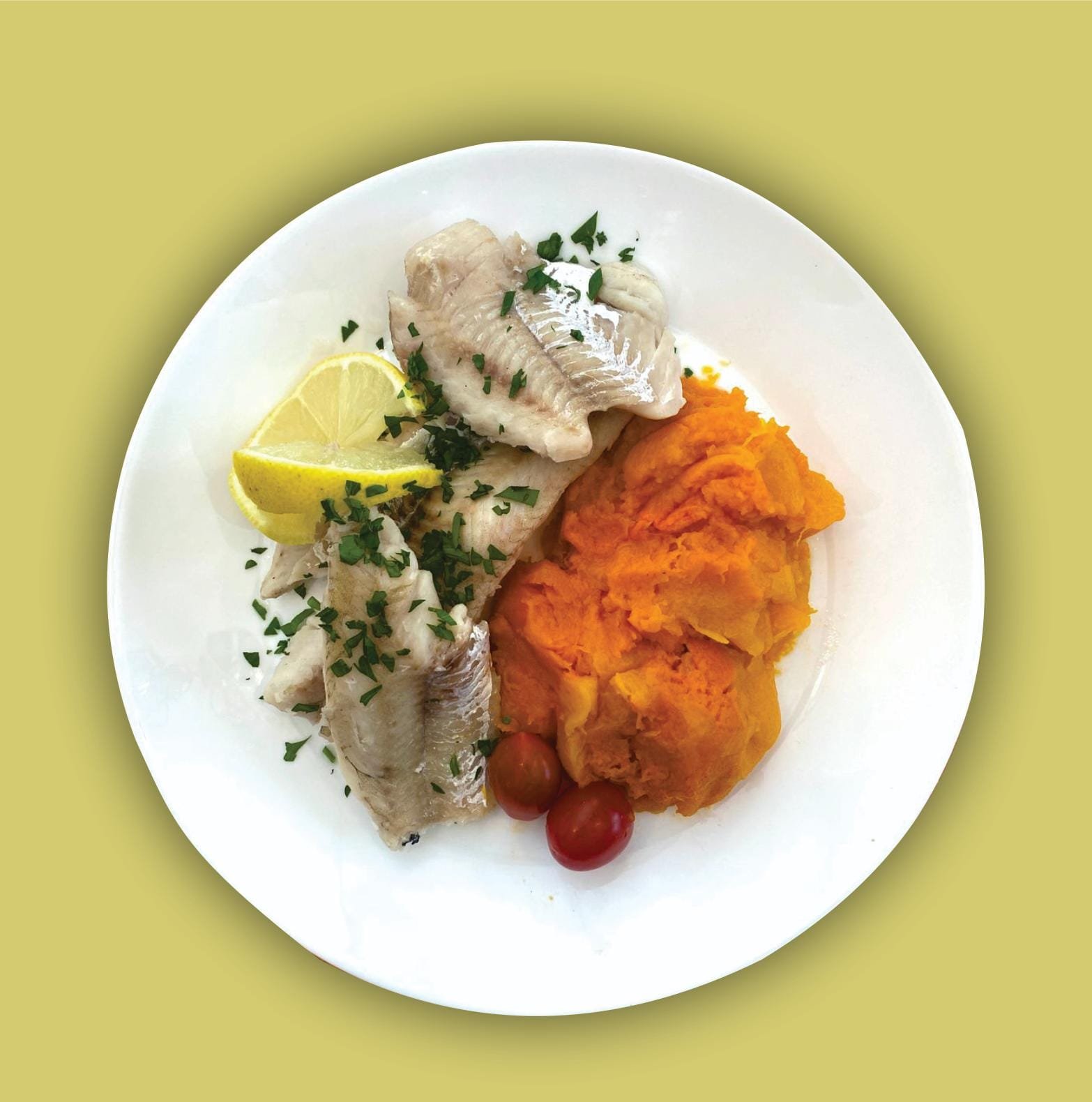 Merluza al limón con puré de calabaza