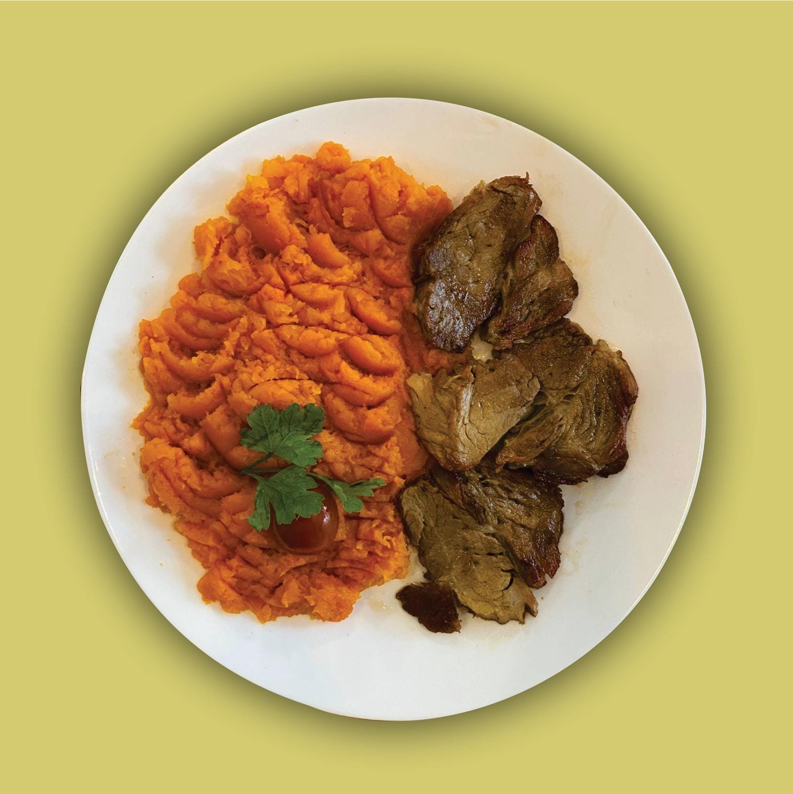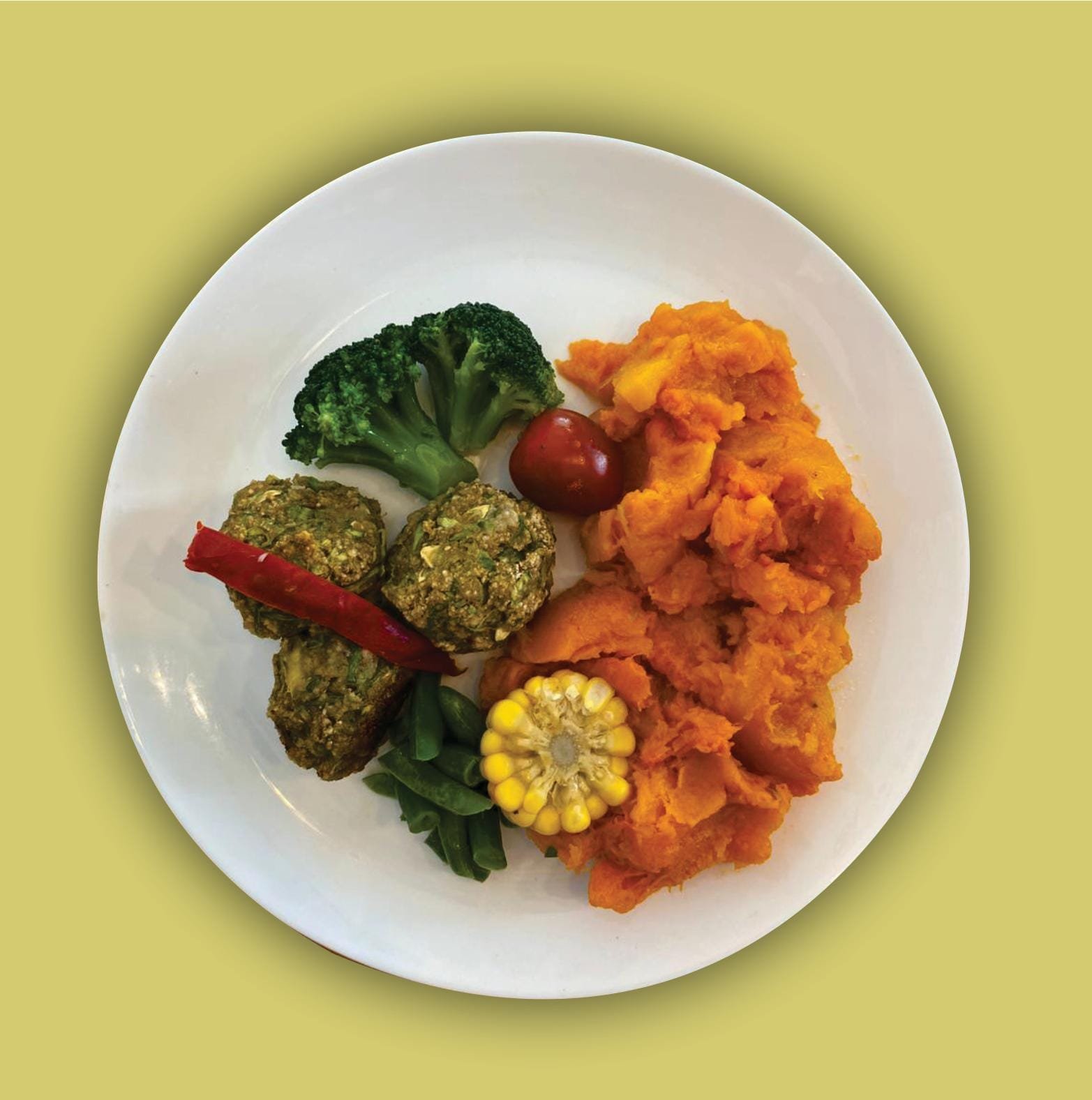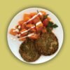 Albóndiga de zucchini, zanahorias al horno con puré de calabaza