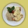 Milanesa de soja napolitana con arroz integral